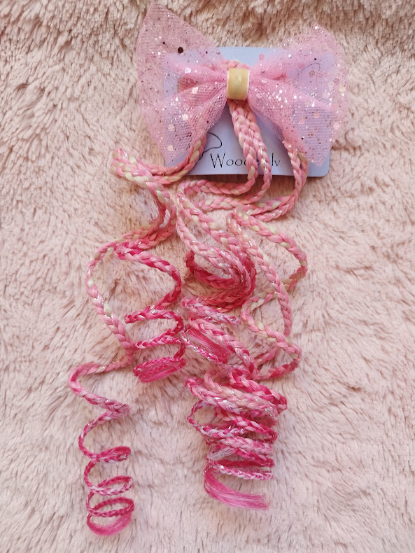 Omniva + 4,00 €Krāsaino matu sprādze ar spīdumu rozā banti.