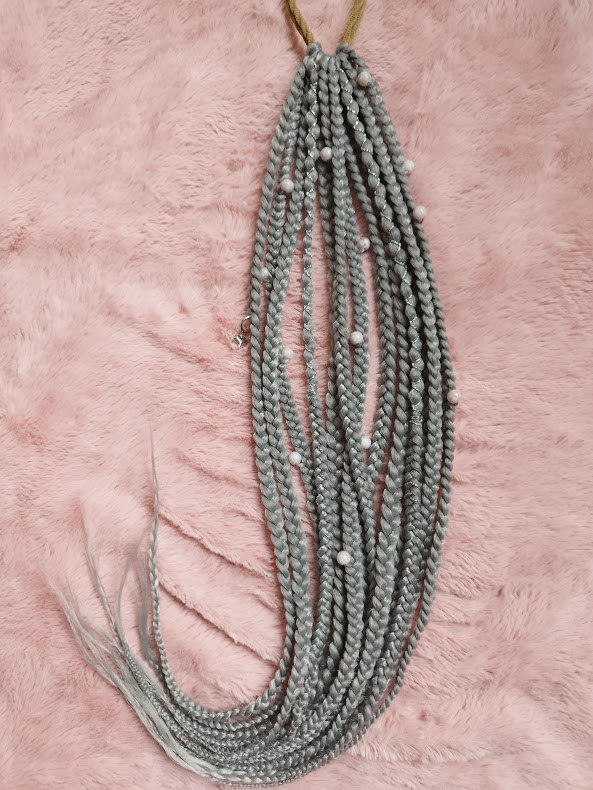 Omniva + 4,00 €Pelēkas bizes, kas rotātas ar sudraba krāsas aksesuāriem un bēšām pērlītēm.
