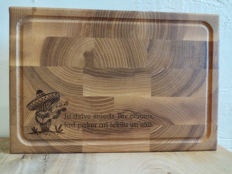 Oša gala šķiedras virtuves dēlītis. Dēlīšiem pa perimetru izveidota renīte, lai gatavošanas laikā esošajam šķidrumam būtu kur uzkrāties. Pēcapstrādei izmantota pārtikā lietojamā eļļa.