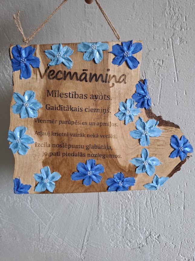 Omniva + 4,00 €Dēlīši dedzināti uz ozolkoka materiāla un tiek apvienots ar tekstūrveidošanas masu. Pēcapstrādei izmantota ūdens bāzes laka. Katram dēlītim tiek piestiprināta aukliņa ar āķīšu palīdzību.